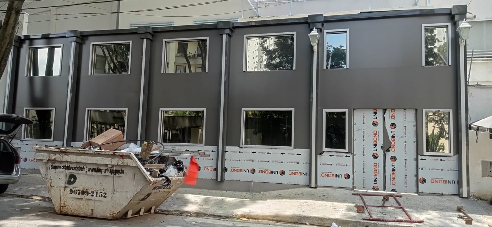 Neste projeto de Fachada em ACM para a Baby Kids School, nossa equipe finalizou a gloreira, gradil, acabamentos de porta e acabamentos das caixas de luz e água.